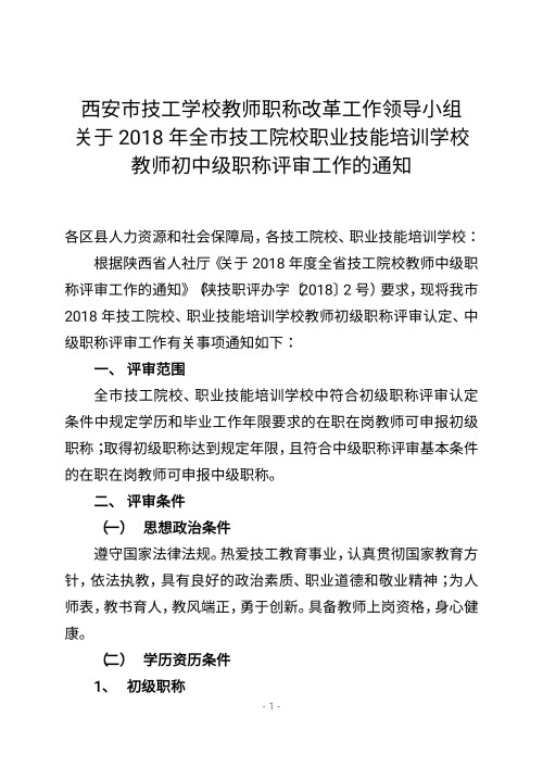1.关于2018年全市技工院校职业技能培训学校教师初中级职称评审工作的通知