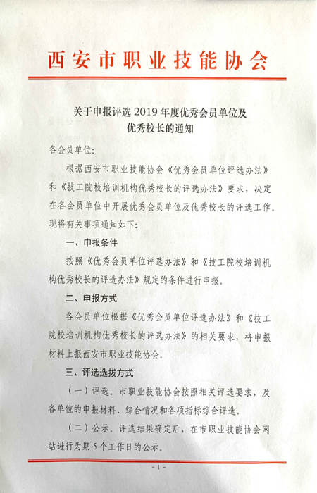 发稿时间:2019-11-14 来源:西安市职业技能协会[官网]